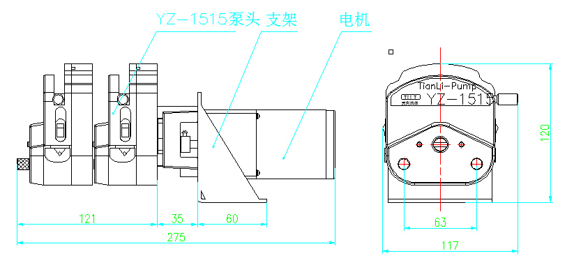 YZ1515双泵头和交流减速电机组件尺寸(如下图)