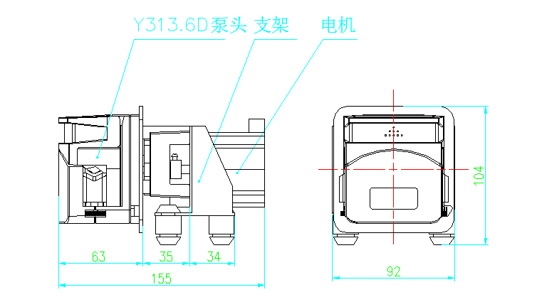Y313D泵头和步进电机组件尺寸(如下图)