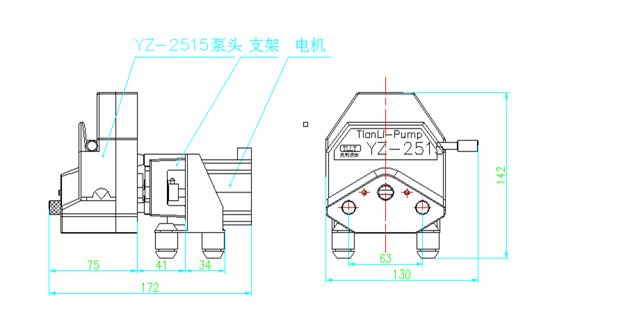 YZ2515泵头和步进电机组件尺寸(如下图)