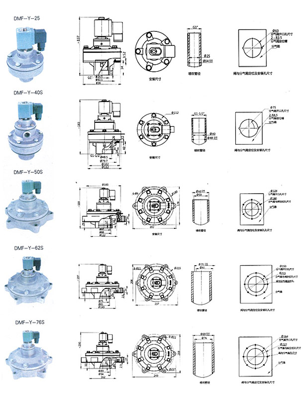 DMF-Y型电磁脉冲阀为淹没式阀(亦称嵌入式阀),它直接安装在分气箱上,具有更好的流通特性。压力损失有所下降,适合于气源压力较低的工作场合。