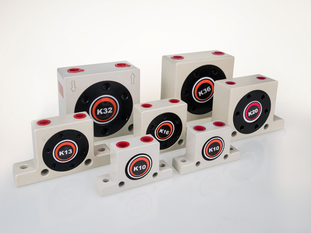 K型滚珠式振动器概述:小型及薄板桶槽架桥破环最佳选择,并可设计运用在振动筛选、振动式输送、输送整列、电镀附着防止、帮助包装充填、铸造砂模之模板振动。